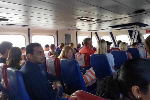 We have to use local jeaps once we get to the main area. Not well organised at all, and we are standing in baking heat.