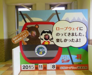 Nikki and I stop to have this fun photo at the boat station on lake Ashi.